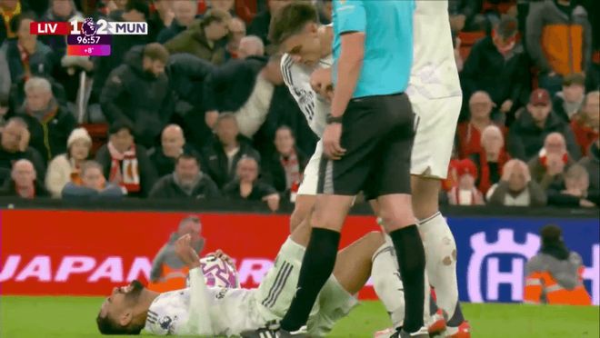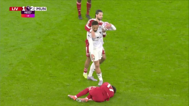 几分钟后,他在利物浦半场铲倒柯蒂斯·琼斯,然后跟索博斯莱就任意球的位置发生了争执。这时候着急的是利物浦,而不是曼联。