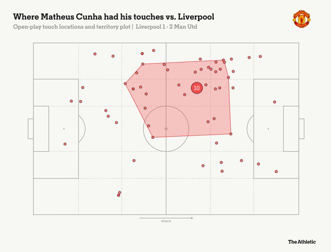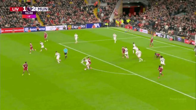这战术变化产生了很大的效果,库尼亚经常大范围回撤,帮助布鲁诺·费尔南德斯和卡塞米罗控制中场,并迫使利物浦防守队员离开自己的位置,这帮助姆贝莫在边路觅得空间。
